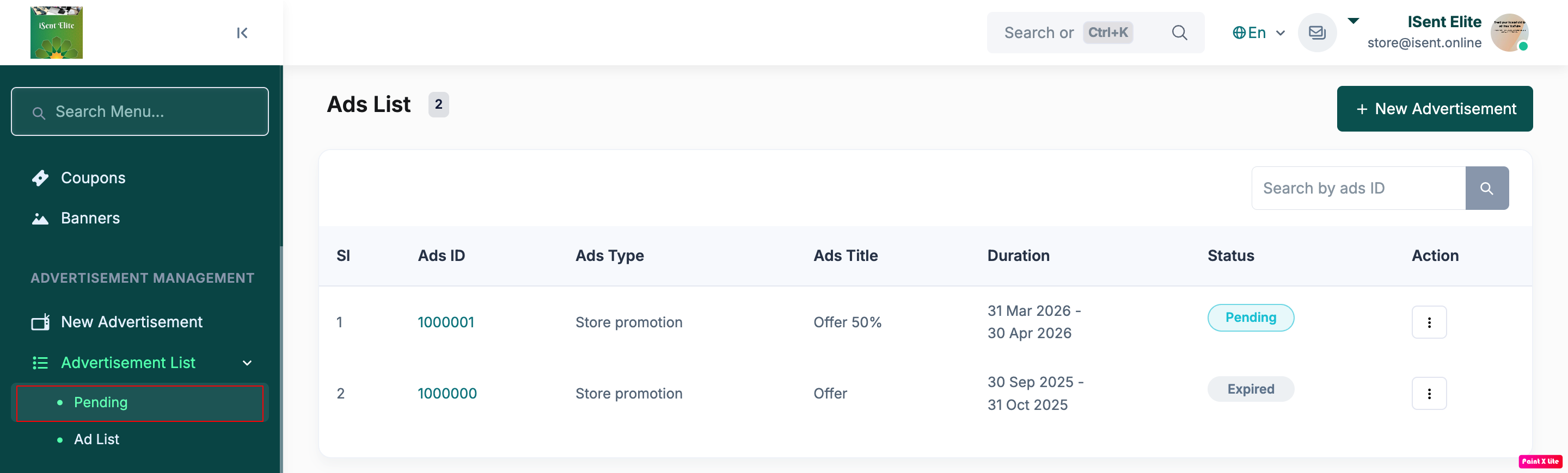 Step 2: Click Pending (to see pending ads) or click Ad List (to see all ads).