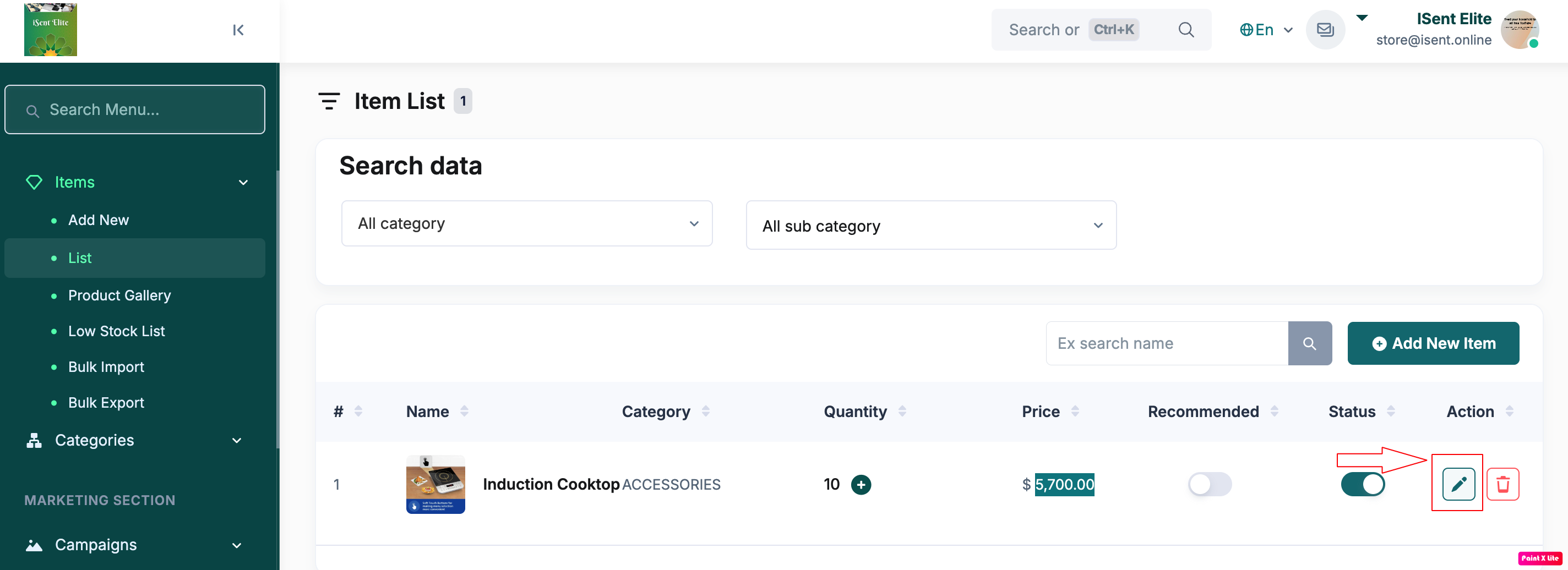 Step 3: Find the item you want to update and click the Edit (pencil) icon .