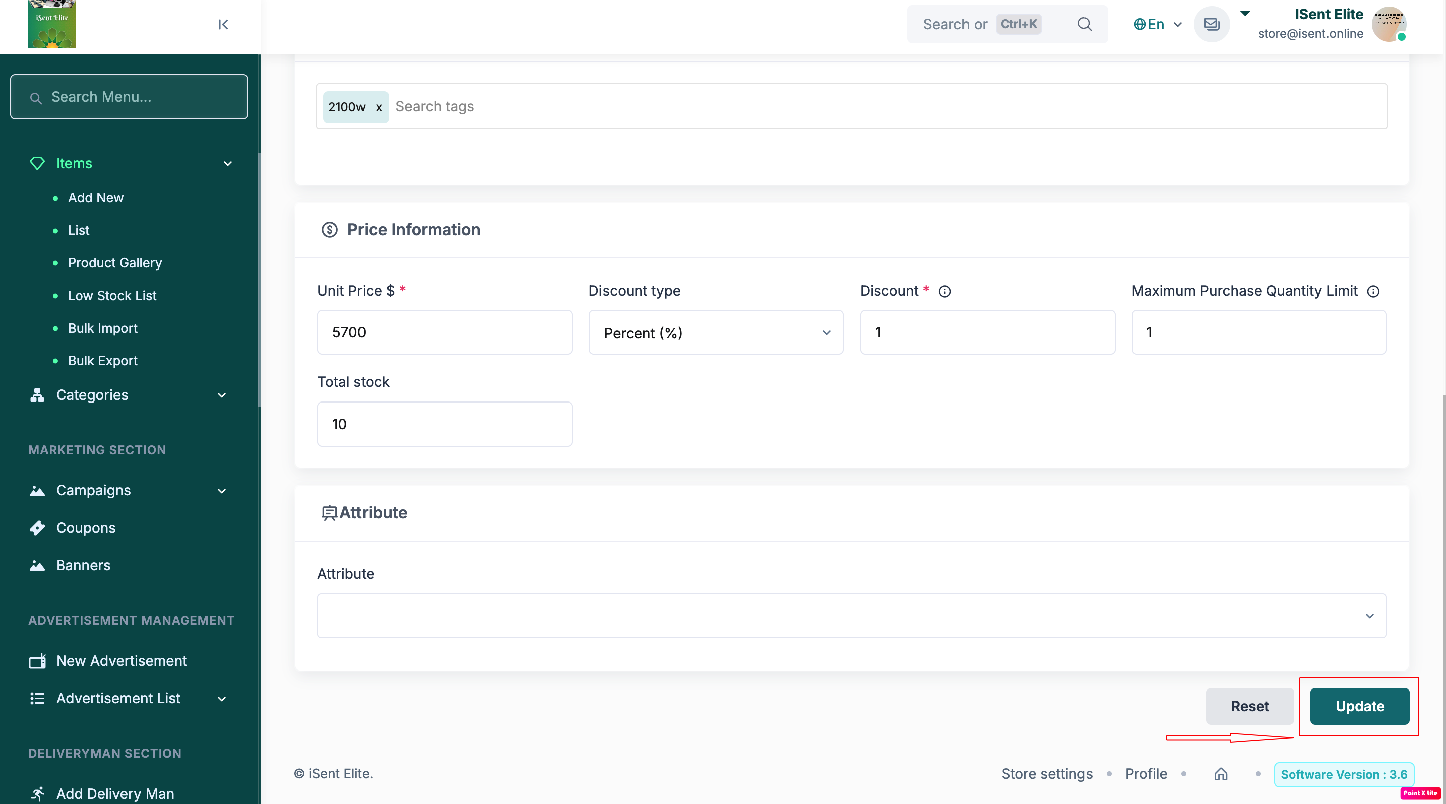- Scroll down and update other required fields (such as price, stock, variation, tax, etc., if your panel has them).